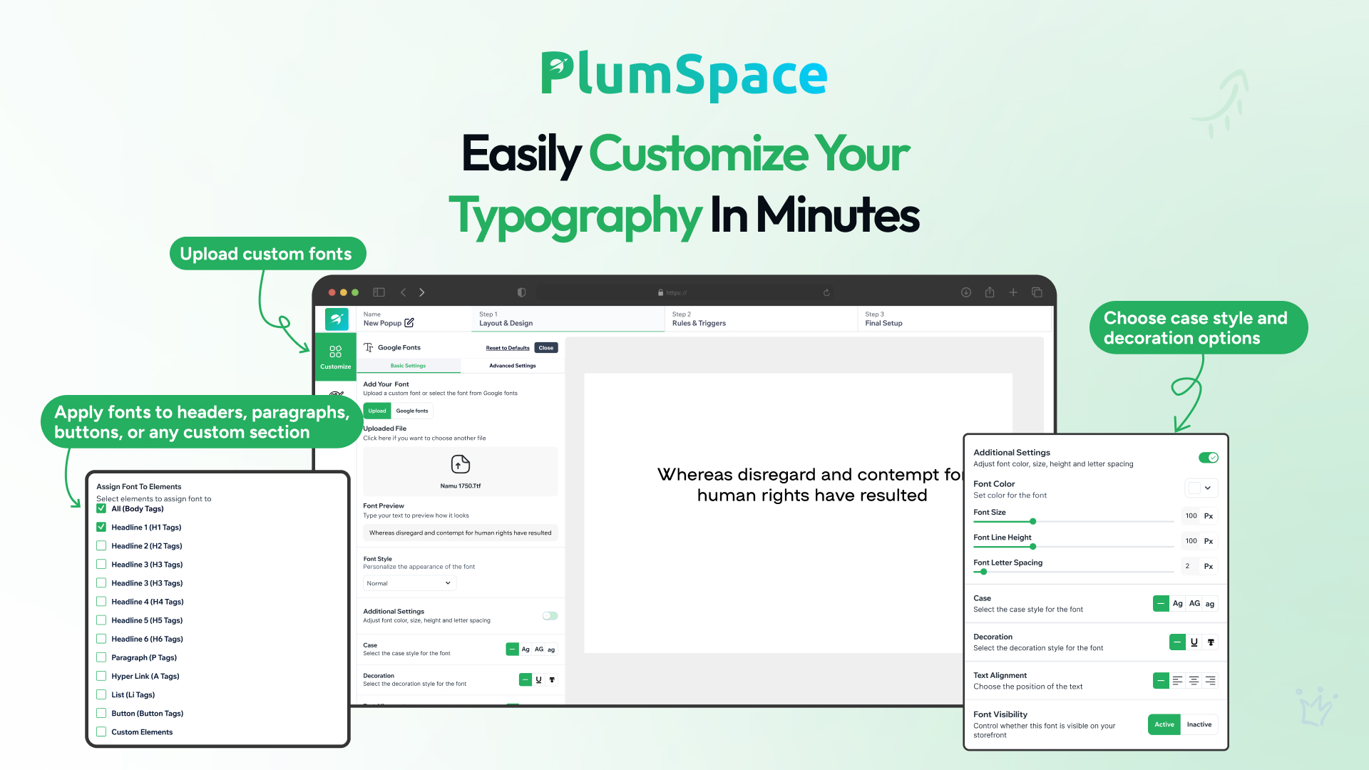 Adjust font color, size, line height, and letter spacing with ease.