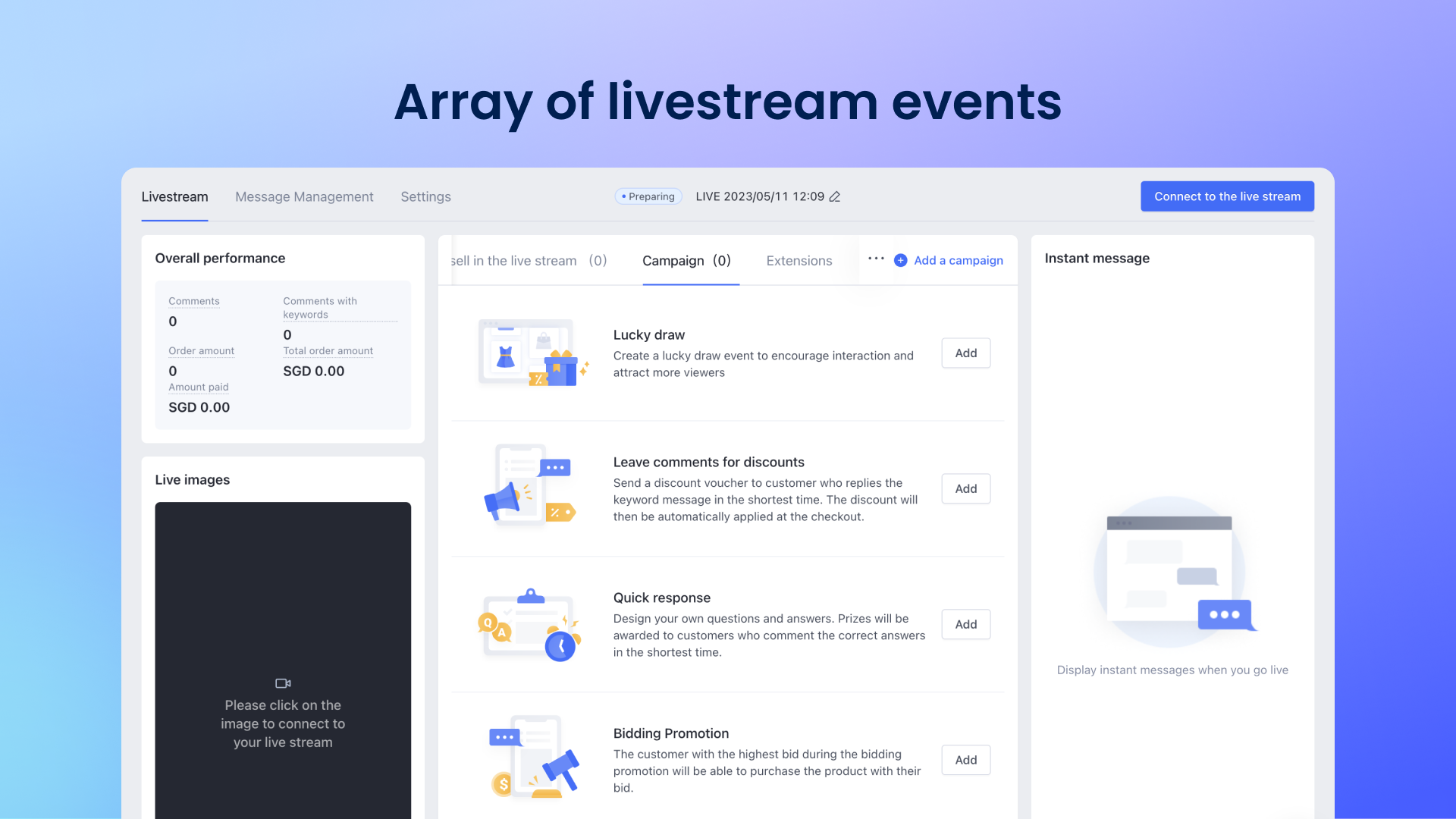 Excite your customers with a wide range of livestream events and special effects