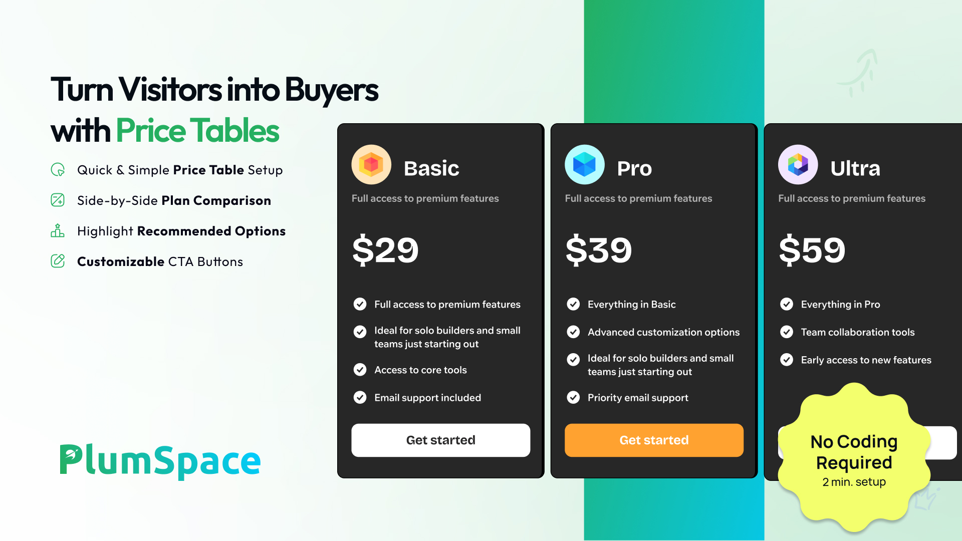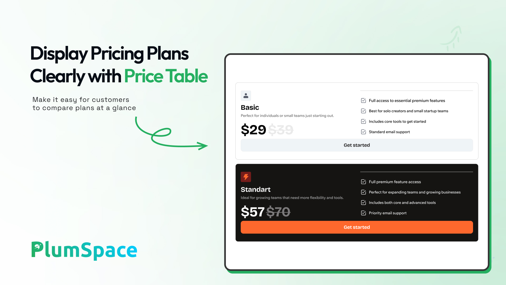 Display Pricing Plans Clearly with the Price Table