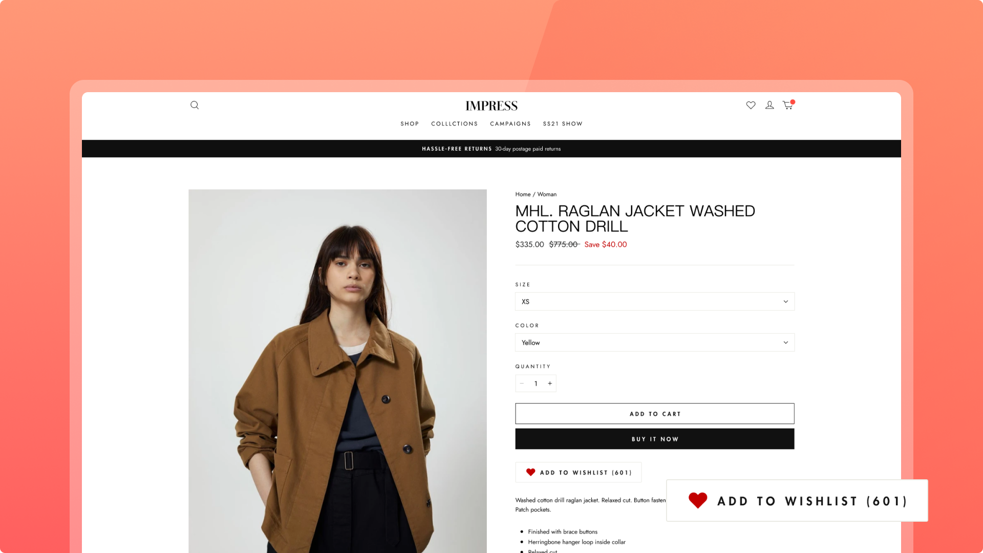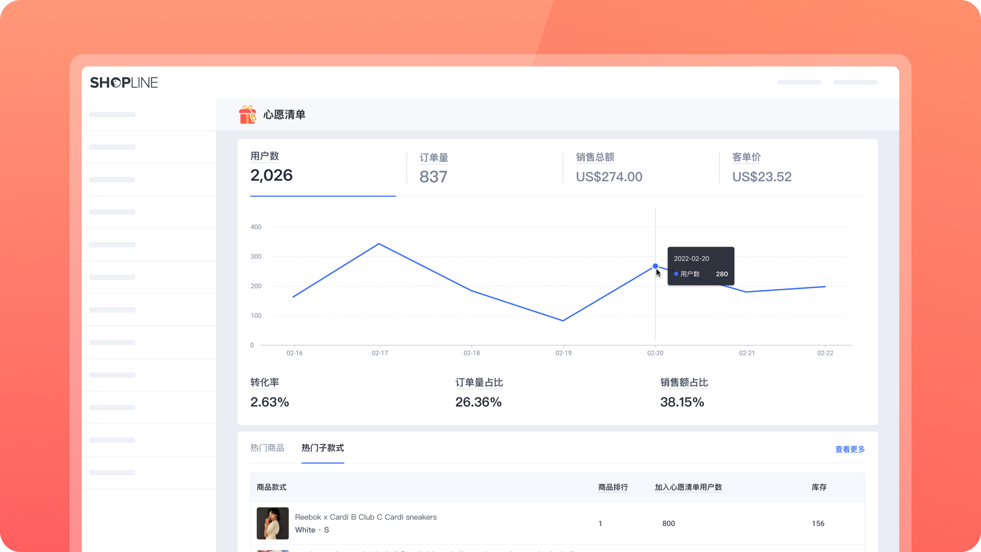 客户可以将喜欢的商品加入心愿清单,方便快速加购并提升转化
