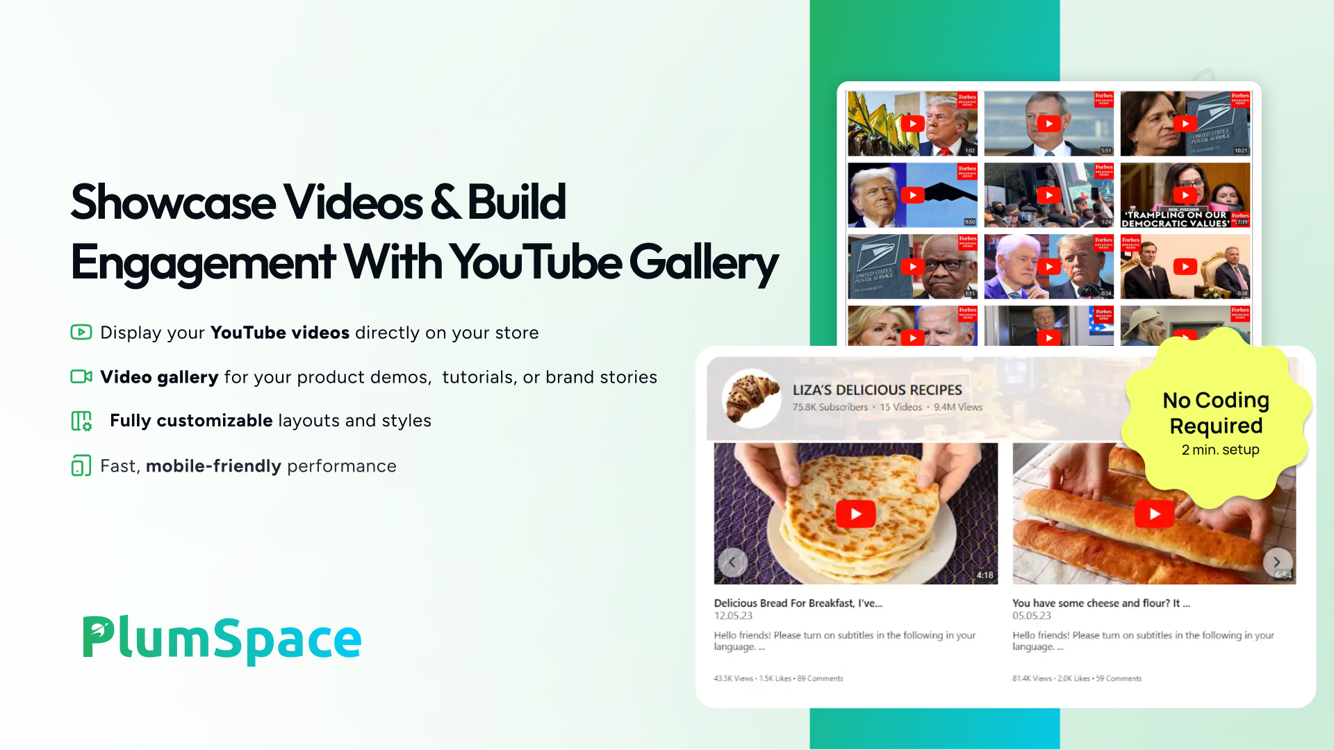 Showcase your YouTube videos in a stylish, fully customizable gallery that keeps visitors watching and engaged. Whether you want to feature a single video, playlist, or full channel display, YouTube Gallery helps you present your content beautifully with no coding required.
