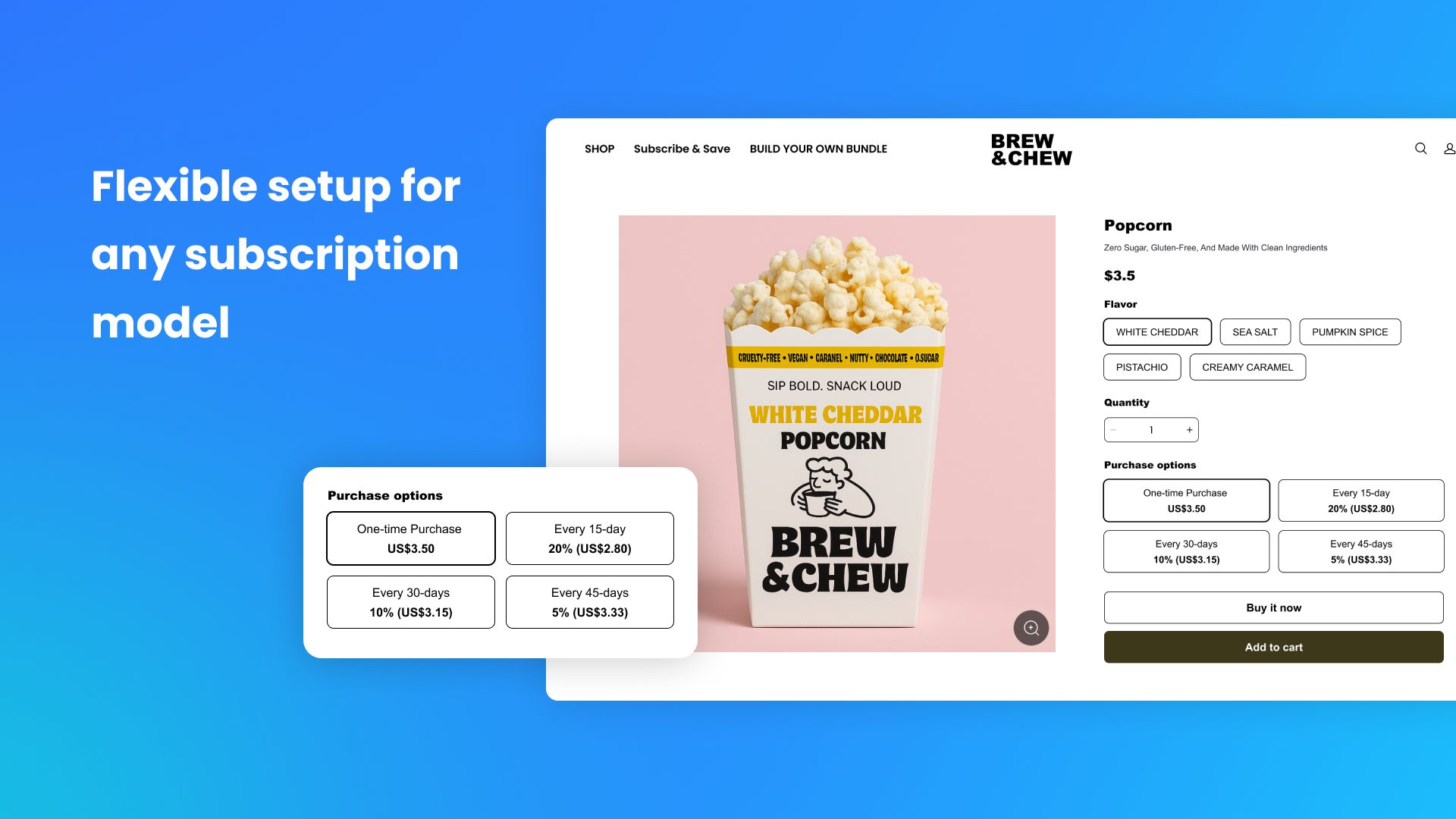 Supports various subscription models—by month, by usage, or by custom cycles. Combine subscription frequency, term length, product limits, and discounts to fit a wide range of use cases. Whether it’s classic recurring subscriptions or on-demand personalized plans, merchants can deliver tailored subscription experiences effortlessly.
