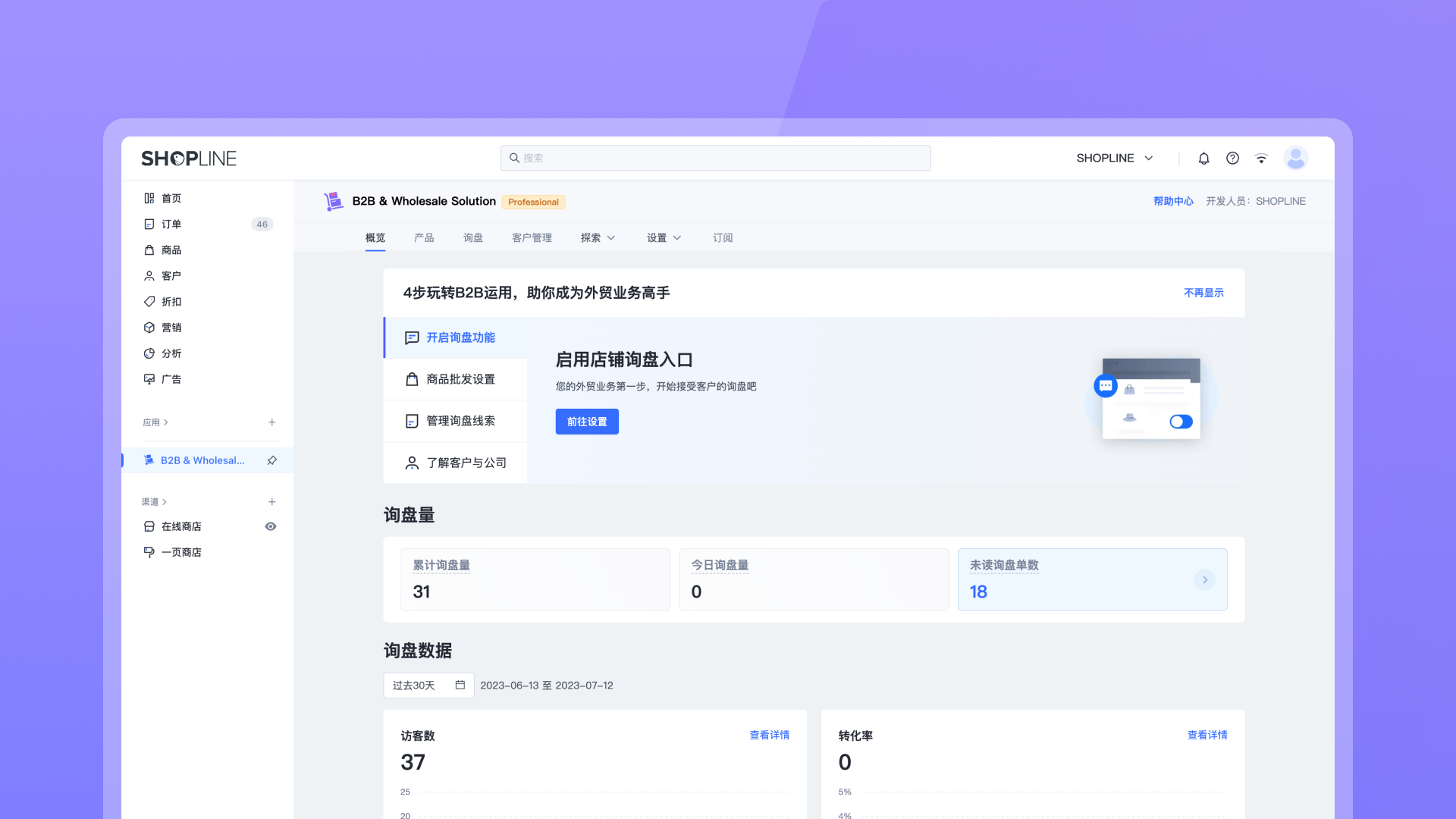 集成询盘服务、阶梯定价与最低起订量设置,提供 B2B 一站式解决方案,助力大宗贸易和批发业务高效增长。