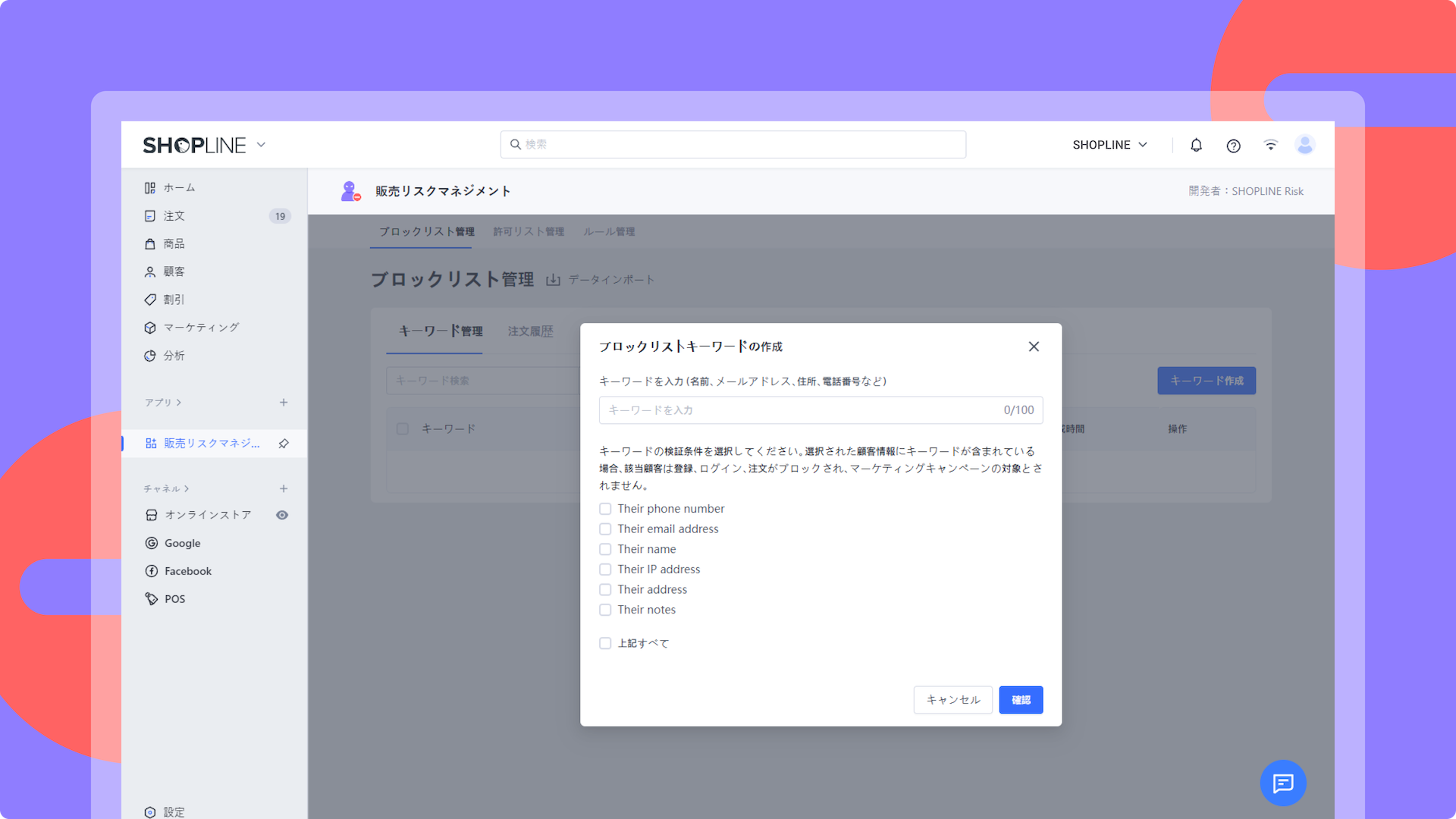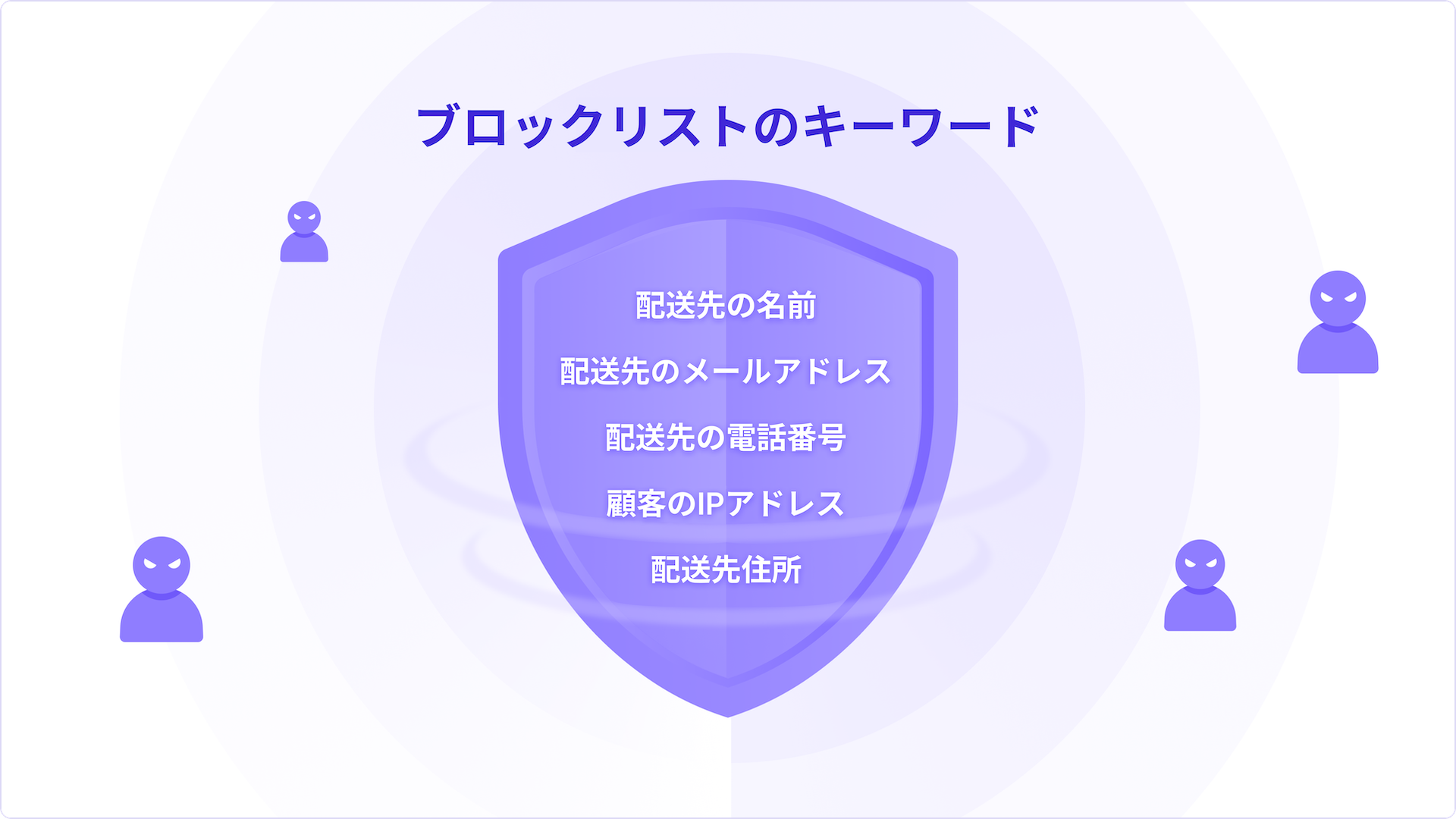 ストアの注文状況をリアルタイムで監視します。ブロックリストユーザーからの注文をブロックし、許可リストユーザーからの注文を許可して、購入者の異常な行動を通知/ブロックすることで、より安全で安心なビジネス展開を確保します。