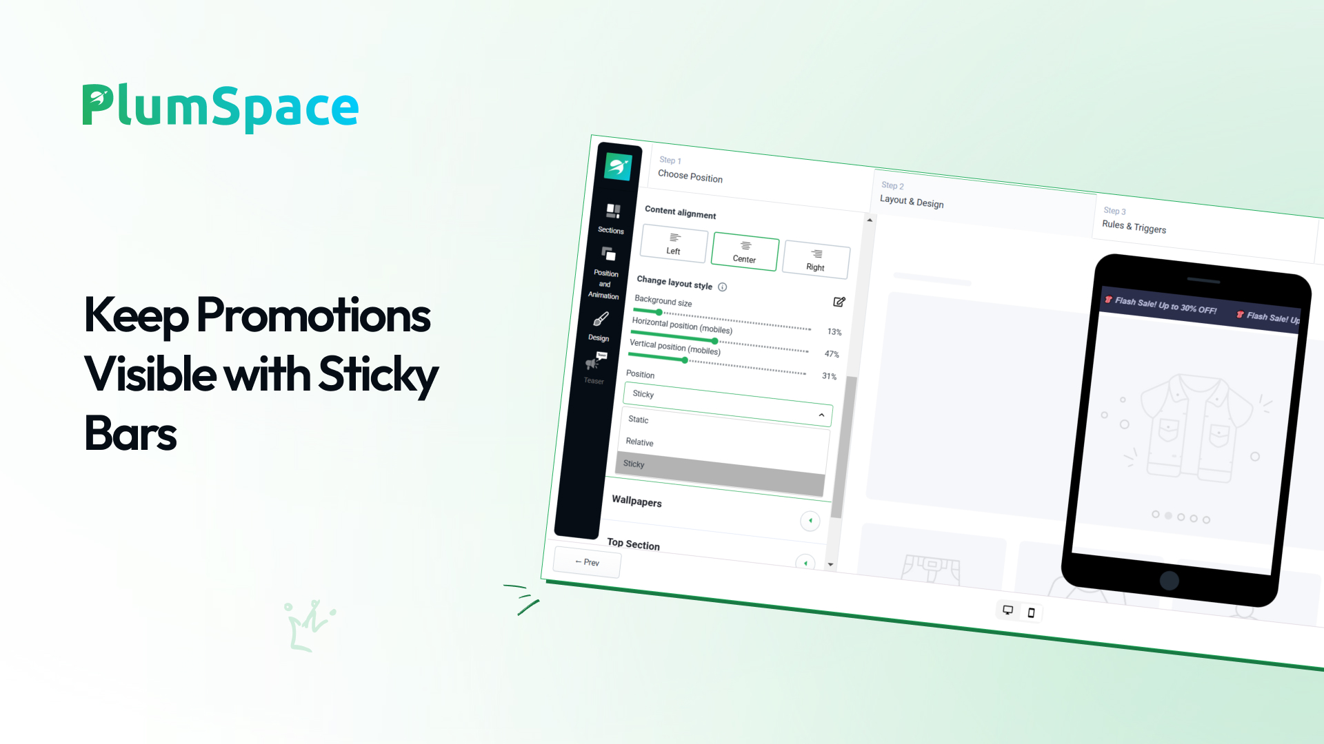 Showcase bars in sticky, static, or relative positions for maximum impact.