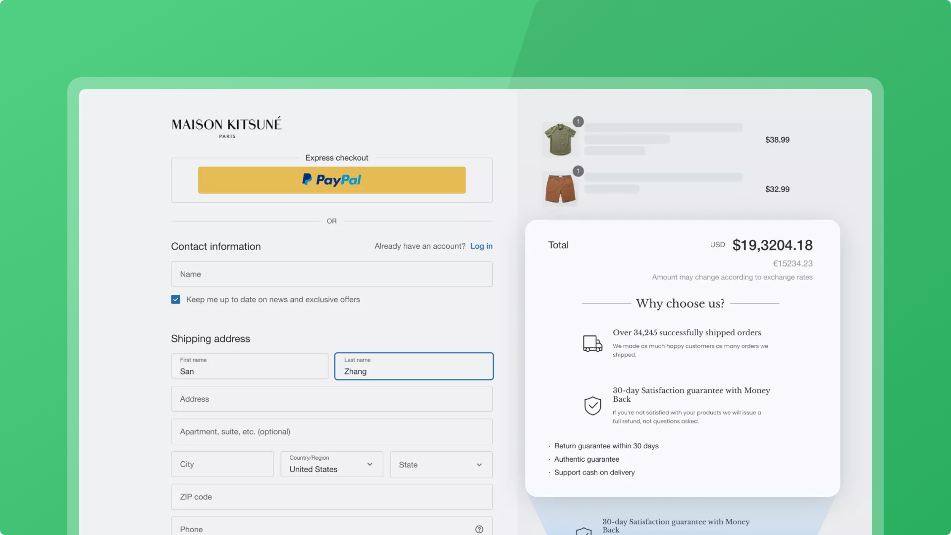 Cải thiện tính thẩm mỹ của trang thanh toán