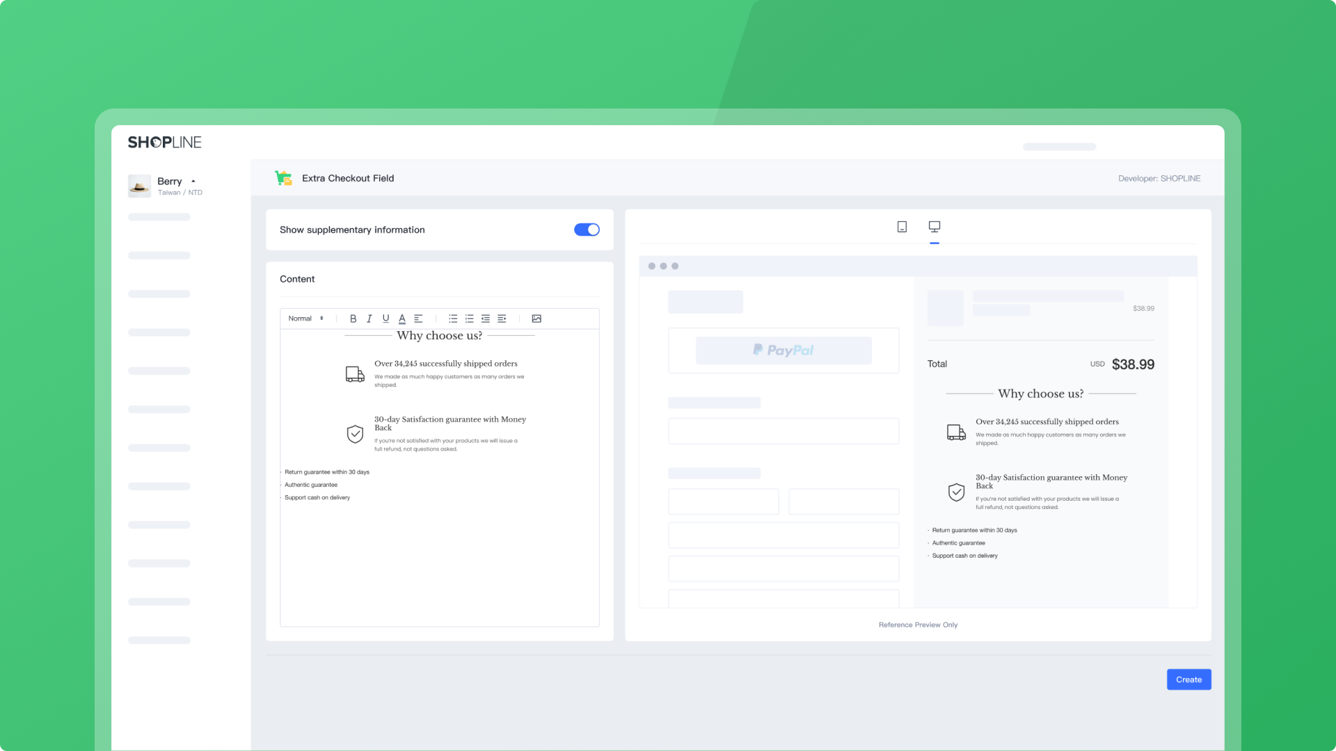 Hỗ trợ hiển thị các thông tin bổ sung cần gợi ý cho khách hàng trên trang quyết toán như hướng dẫn vận chuyển, chính sách đổi trả, thông tin ưu đãi v.v. giúp nâng cao sự tin tưởng của khách hàng.