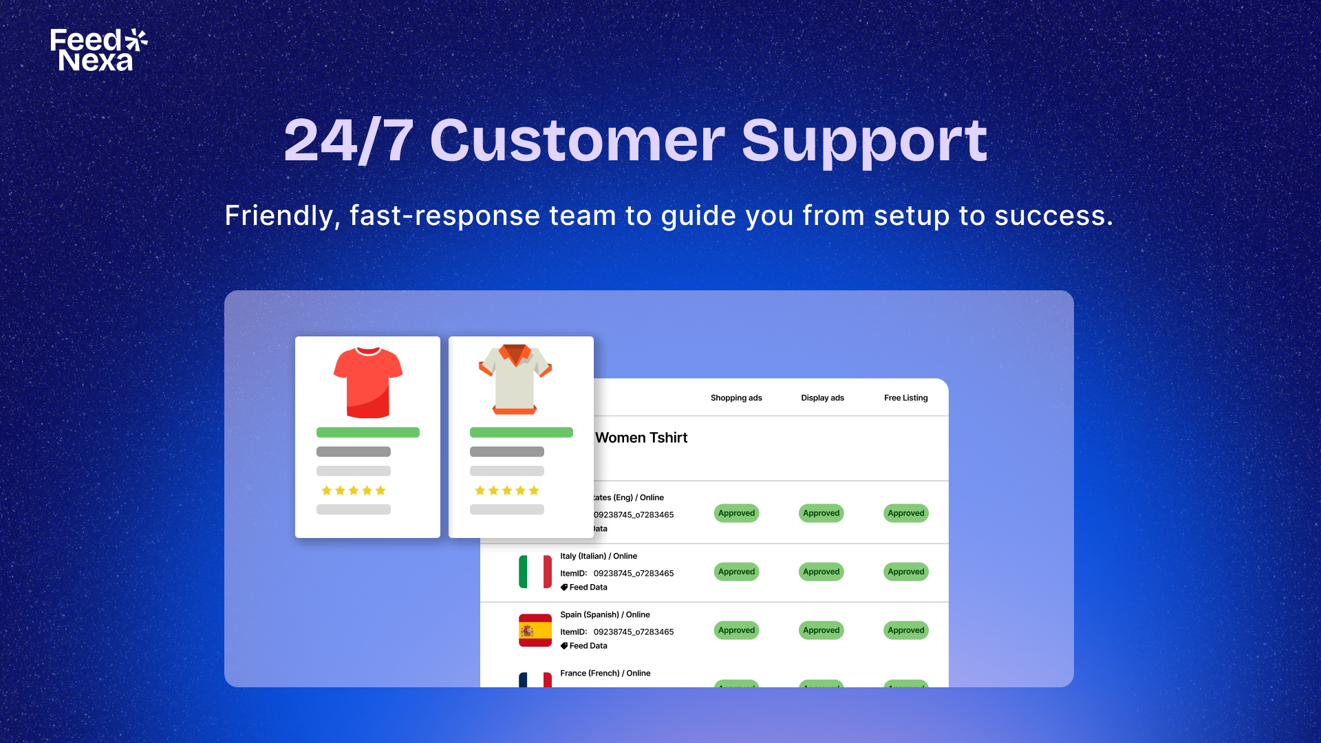 Get started in minutes with no technical experience required. Schedule daily or weekly feed syncs to keep your product data fresh and consistent. Our expert team is available 24/7 to support you.