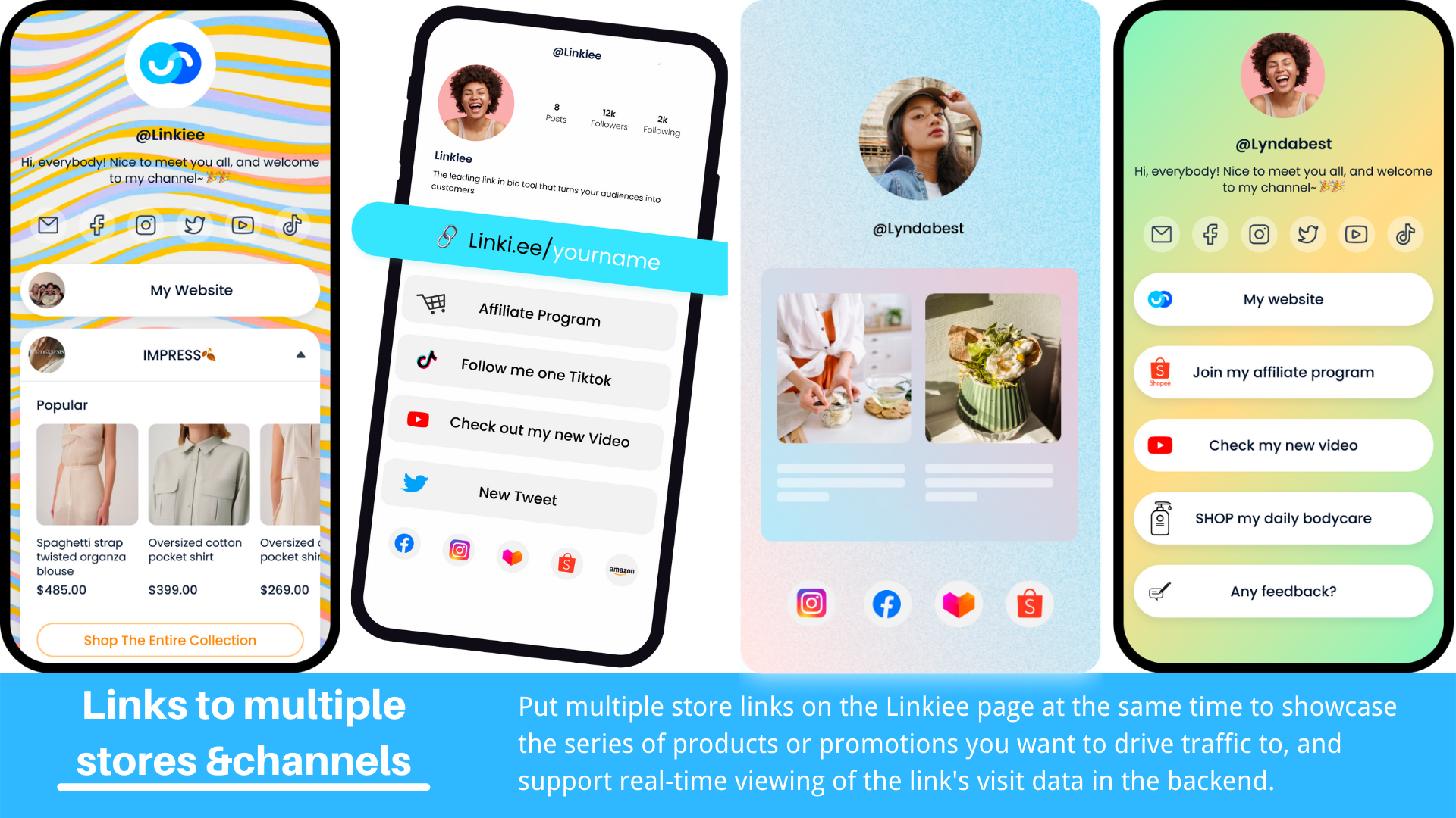 Merchants can put different links on Linkiee pages such as e-commerce sites, marketplace sites, etc. Also, Linkiee's advanced data analysis can provide an in-depth resolution of the link's performance