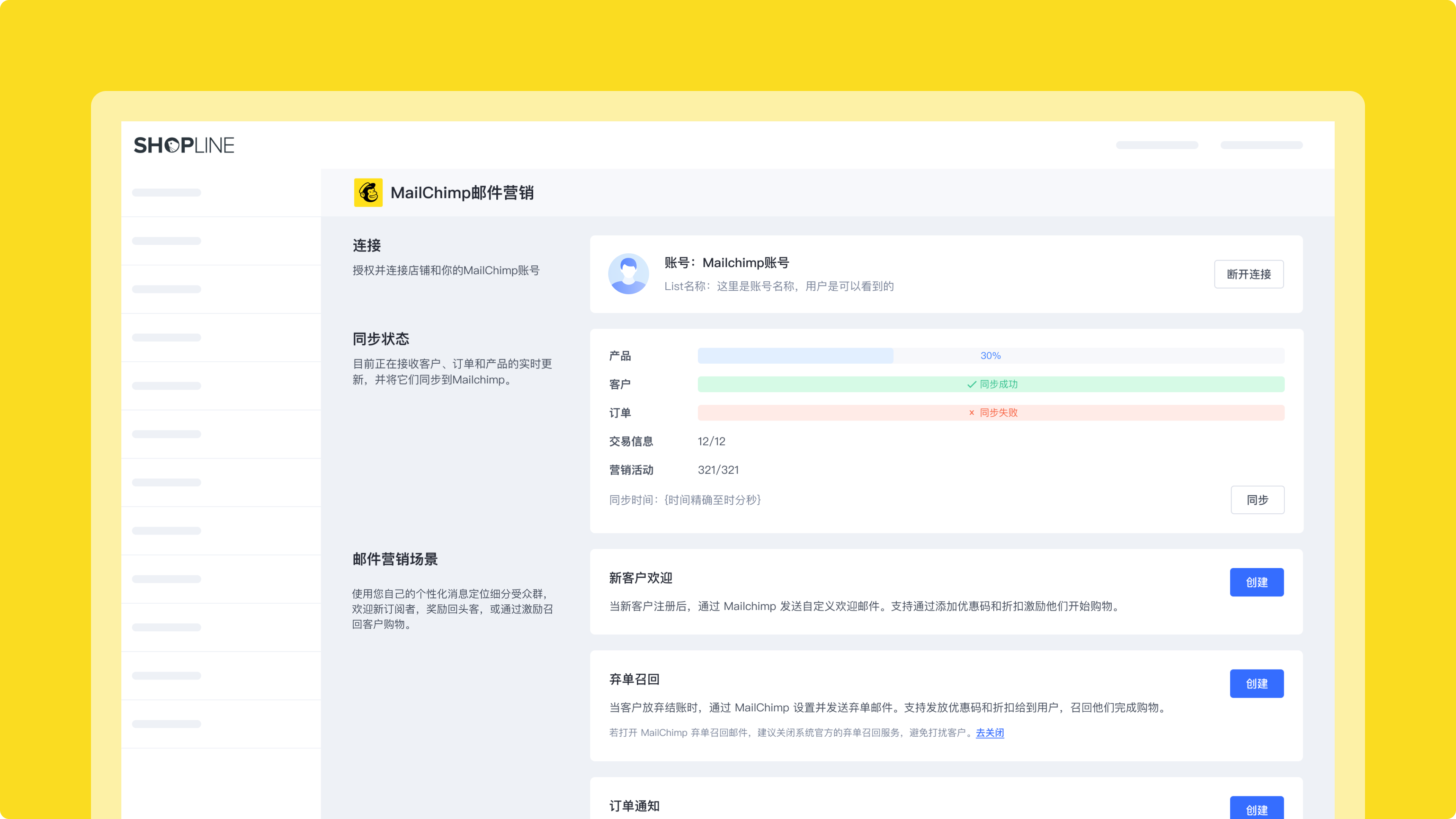 连接您的商店,以自动将商店数据与Mailchimp同步