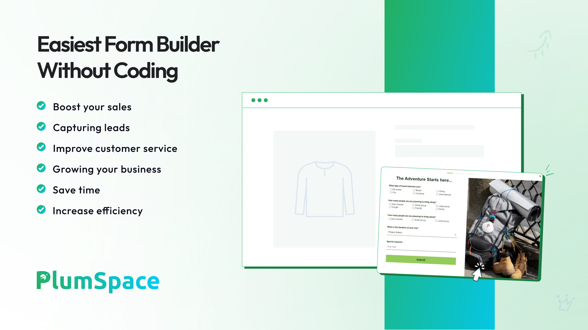 Design and manage various forms like Booking, Order, and Registration forms, without any coding required. The intuitive interface allows you to quickly build forms to suit any need, streamlining your workflow and saving time.