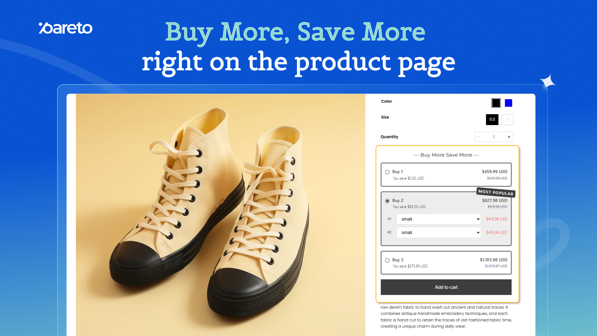 Pareto Bundles & Quantity Breaks helps you do exactly that. With 4 simple tools, you can encourage customers to buy more — at every step of their journey.