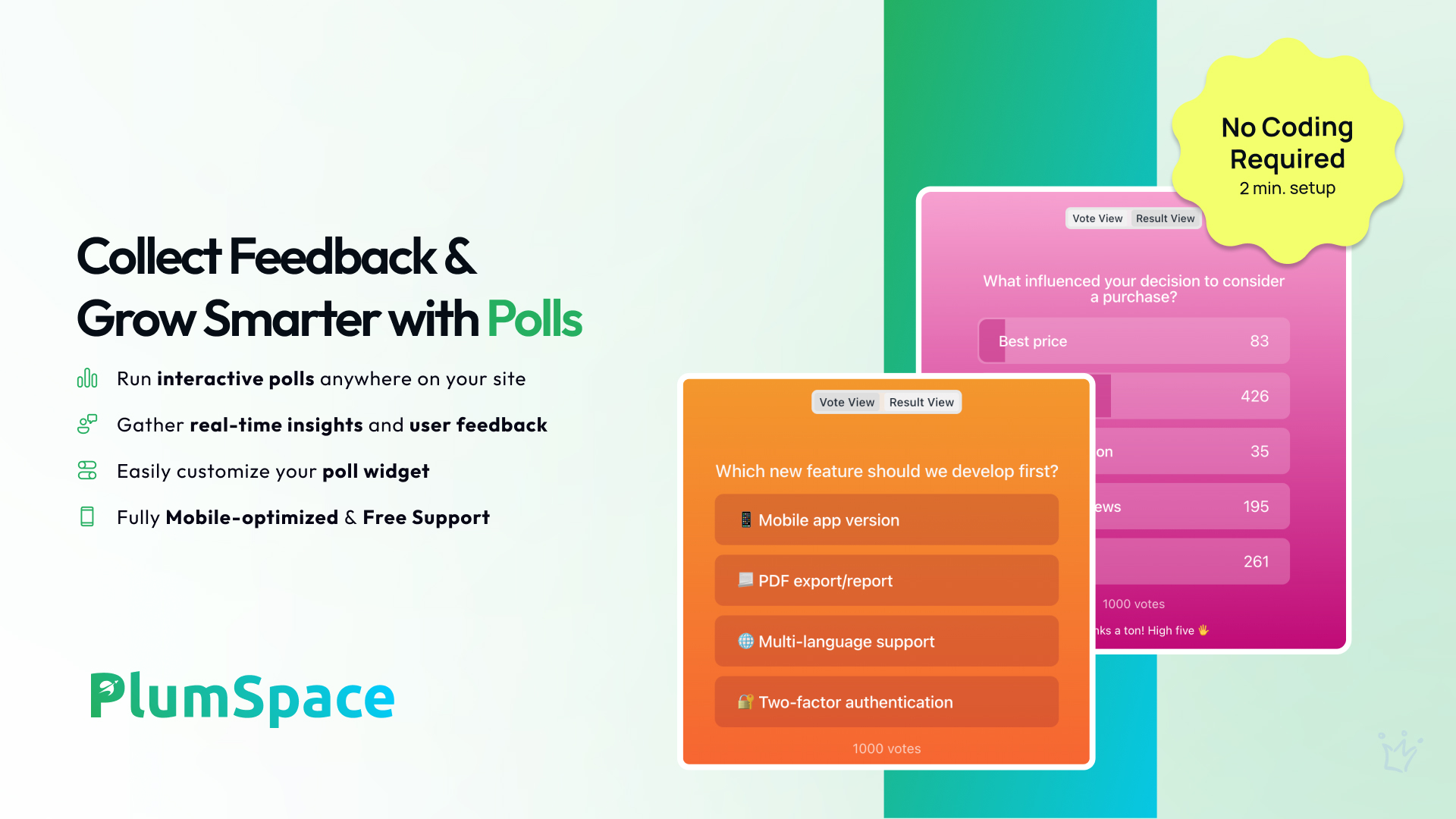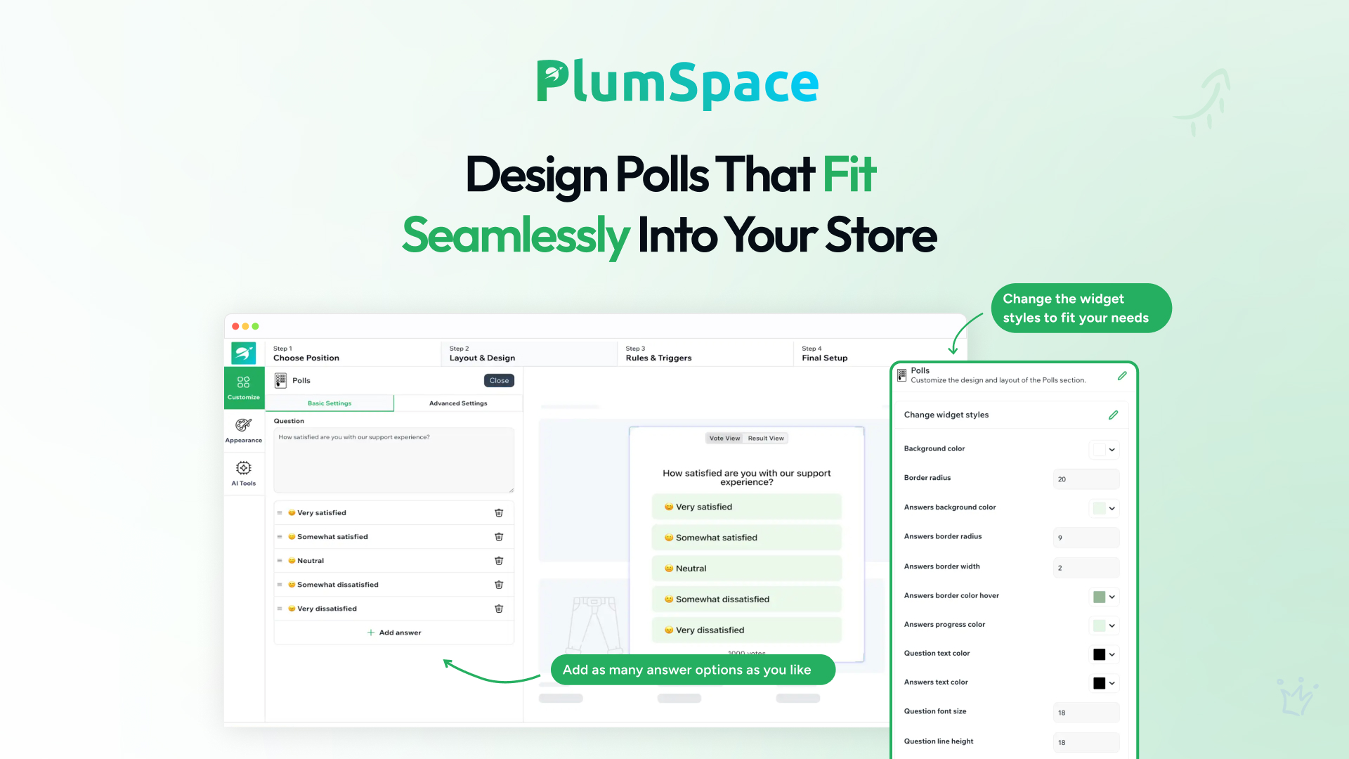 With Polls, you can easily gather customer feedback, learn what your visitors think, and turn answers into action. Whether you want to improve product offerings, adjust messaging, or offer personalized recommendations, this poll widget makes it fast and effortless.