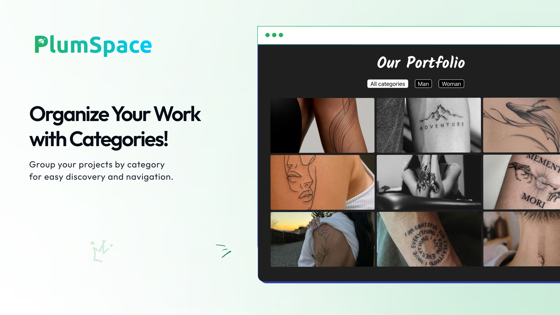 Allow visitors to filter projects by category for easy navigation.