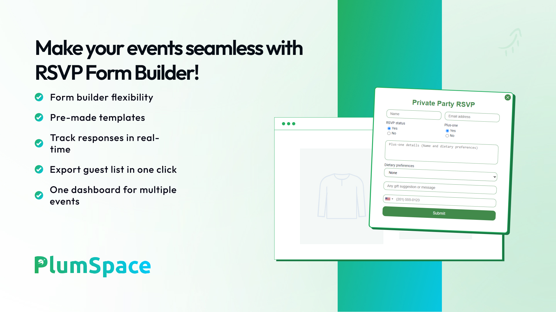 Effortlessly design, manage, and track event registrations with the RSVP Forms Builder for Shopline! This app makes it simple to create fully customizable RSVP forms that match your event’s style, add them to your Shopline store, and monitor responses in real time. Perfect for event planners, businesses, or anyone hosting events, the app streamlines registration without needing any coding. Whether it's a conference, wedding, or party, RSVP Form Builder simplifies your planning process from start to finish. Key Features: - Customizable RSVP Forms: Build personalized forms to fit your event’s needs, no coding required. - Real-Time Response Tracking: Track guest responses instantly via the app’s dashboard. - Drag-and-Drop Builder: Easily design and modify forms with an intuitive drag-and-drop interface. - Multi-Event Management: Seamlessly manage registrations for multiple events from one platform. - Export Guest Lists: Download responses as CSV or Excel for simplified event planning. Why Choose RSVP Form Builder for Shopline? RSVP Form Builder helps you save time by streamlining event registrations with an easy-to-use interface. Whether you're planning one event or multiple, this tool ensures a smooth and efficient guest management experience, making it perfect for hosts and event planners alike.