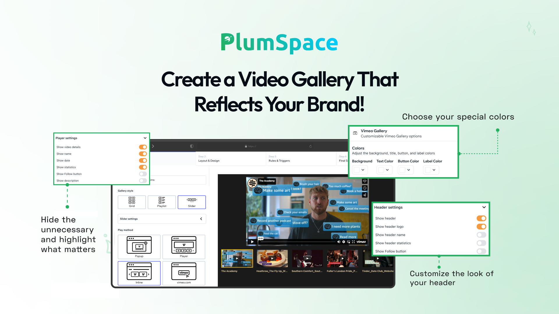 Seamlessly integrate your Vimeo videos into your site with a fully customizable gallery