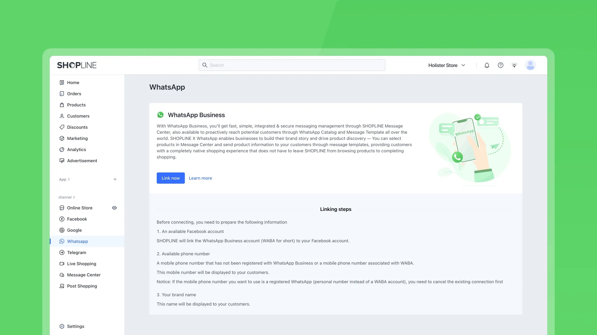 Link your store to WhatsApp and seamlessly send messages to WhatsApp users
