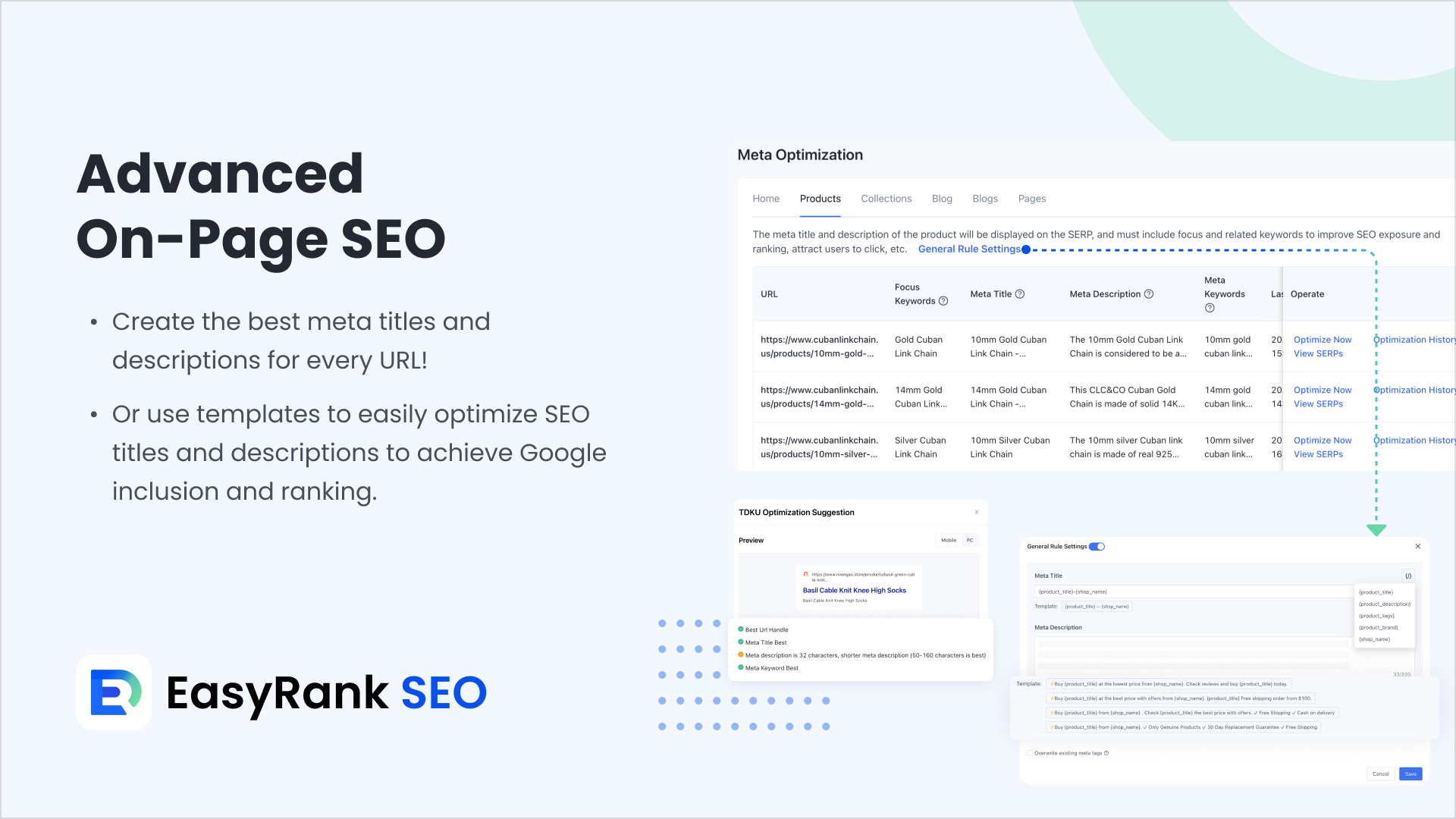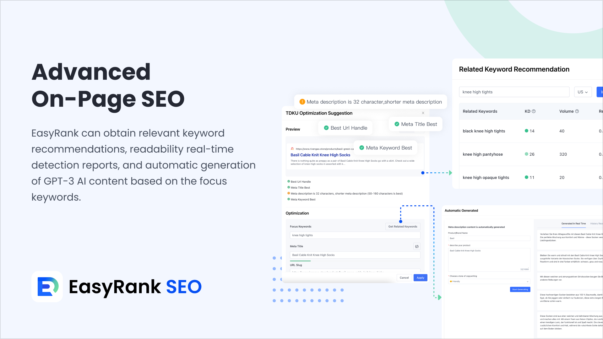Tích hợp GSC, đề xuất từ khóa thông minh, SEO nội dung, SEO kỹ thuật, v.v. để có được kết quả SERP phong phú và tăng thứ hạng và lưu lượng truy cập tự nhiên!