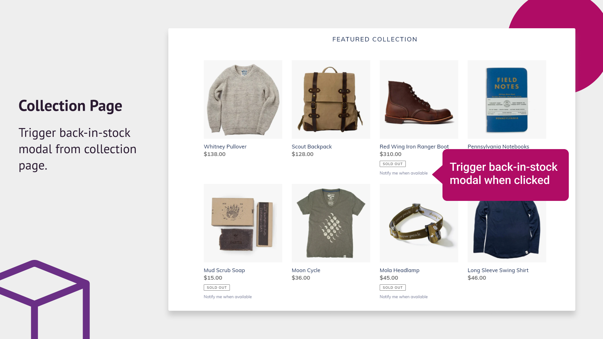 Allow your users to get restock alerts for multiple product variants within a single form.